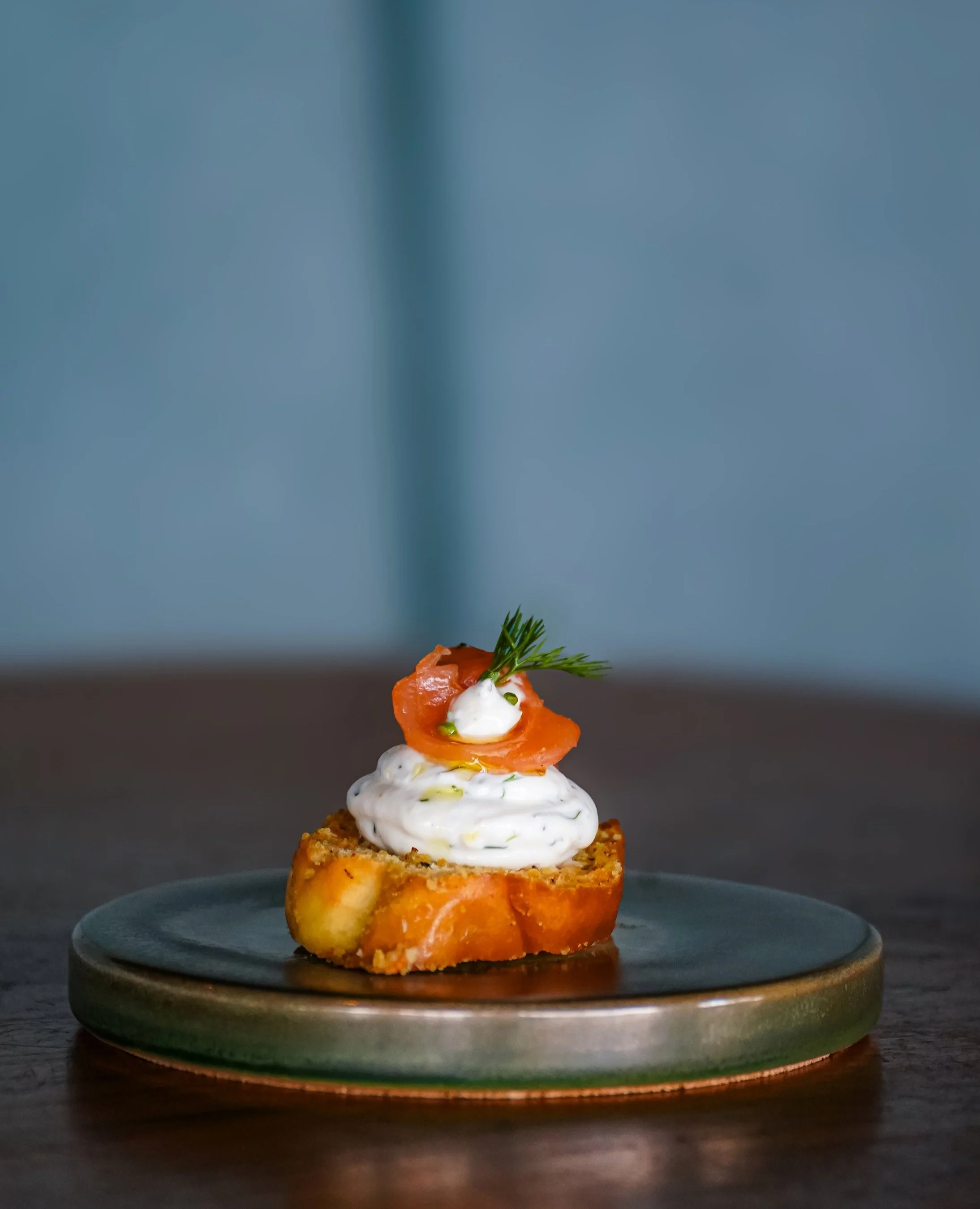 Crostini, Yogurt, Garlic, Dill, Cucumber, Cured Salmon & Olive Oil